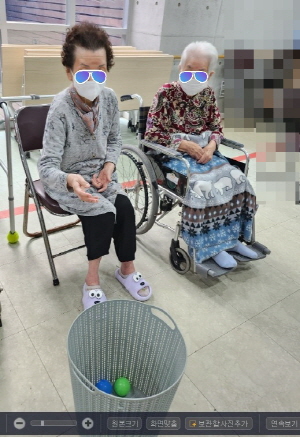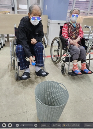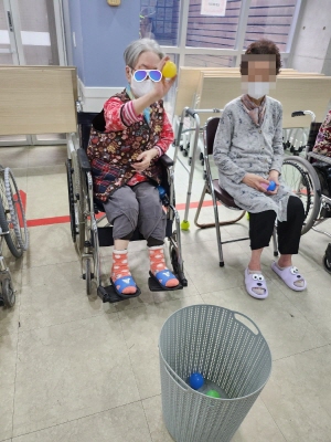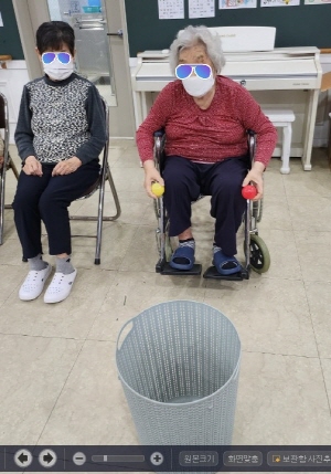 어르신의 신체활동 능력향상과 즐거움을 제공하기 위해 공 던지기 프로그램을 했습니다~