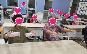 신나는 음악에 맞춰 노래를 따라 부르고 물병 체조를 하며 즐거운 시간을 가졌어요.