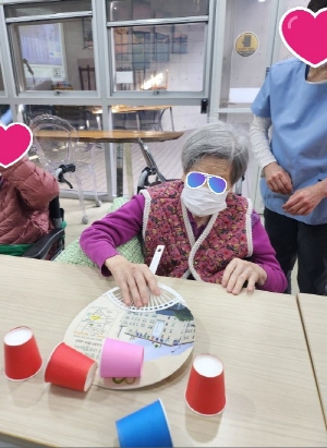 부채를 흔들어 종이컵성을 무너뜨리는 수업을 했어요~![]()
