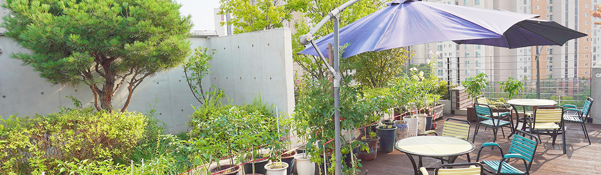 부대시설은 아름다운 정원과 산책로가 있는 옥상층이 있어 어르신들을 더욱 편안하고 쾌적한 환경에서 모실 수 있습니다.