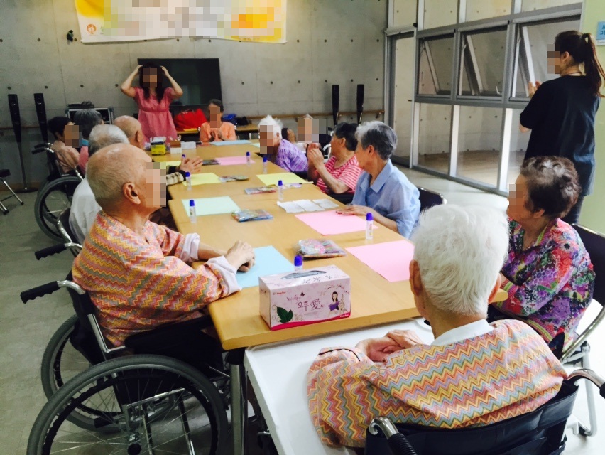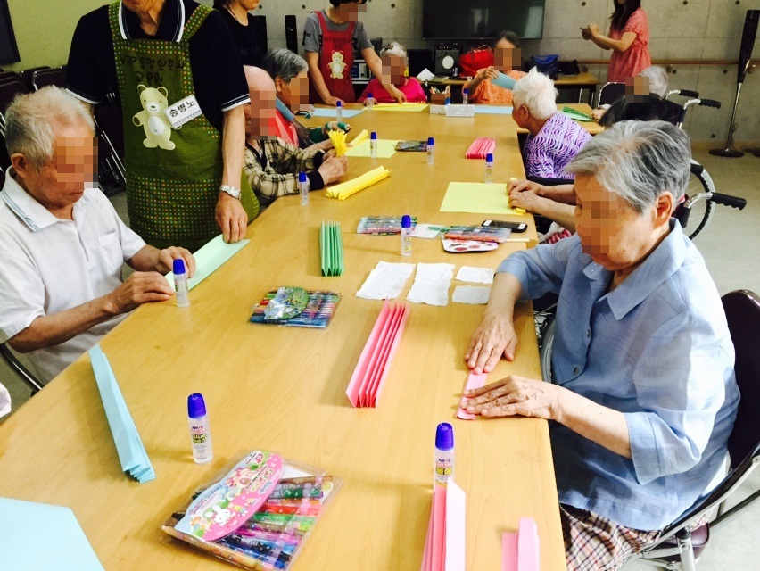 2015.07.14 어르신 미술시간입니다(색도화지 . 물풀. 가위. 색종이)