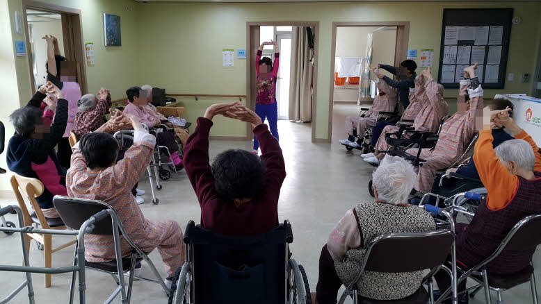 날씨가 추워져도 간단한 동착훈련과 현대가요를 따라부르시며 즐거워 하시는 모습이십니다^^