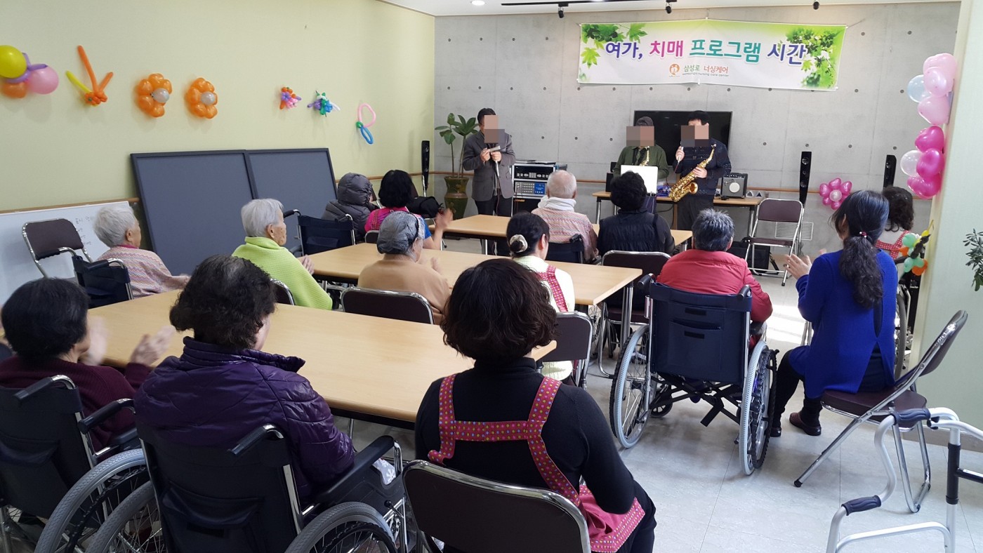 봉사자 여러분 께서 항상 어르신께 즐거운 음악을 들려 드리고 있으니 보호자님께서도 많은 참석바랍니다.,