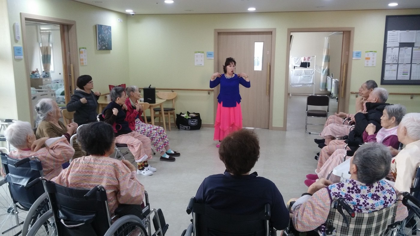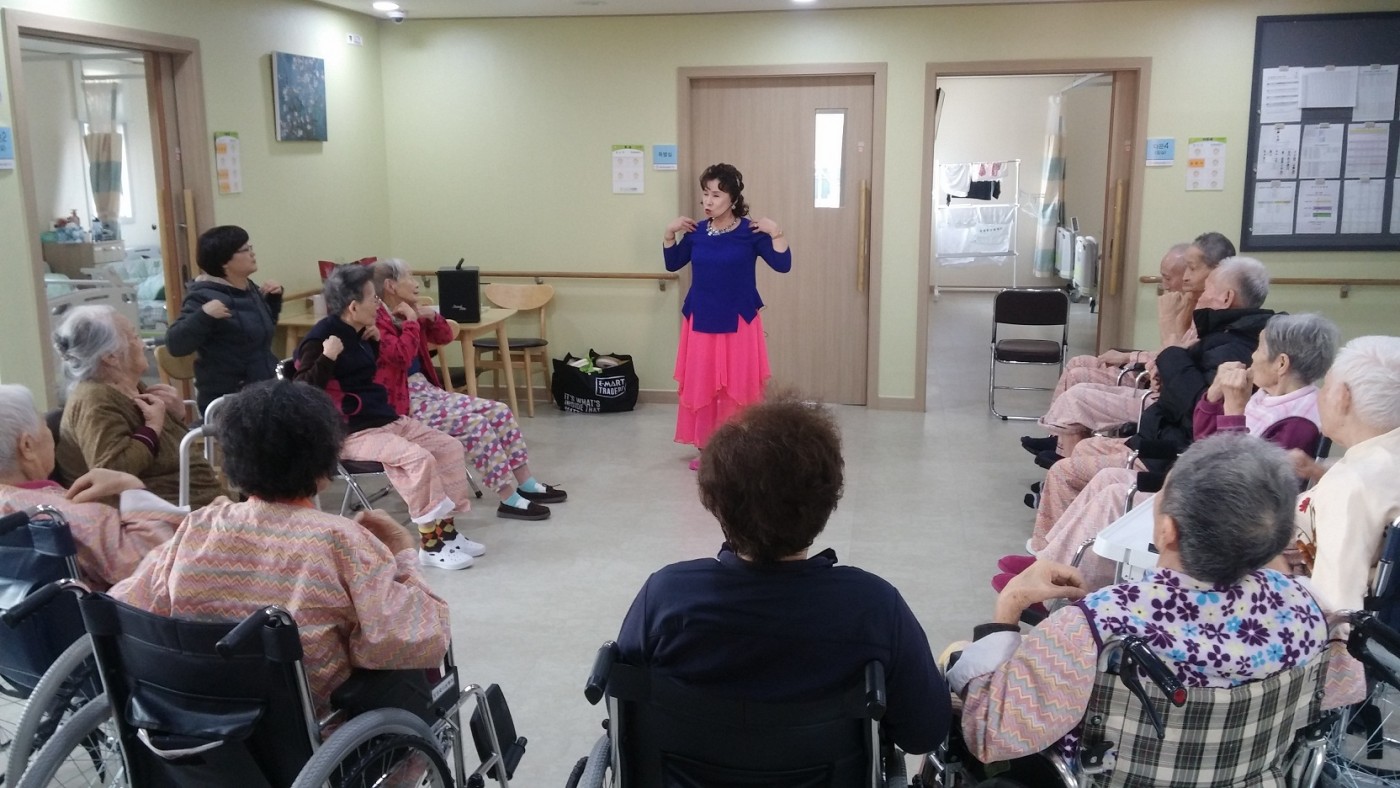음악치료시간에 인지기능훈련과 신체훈련 체조 까지 곁들인 음악시간 너무 즐거워 하십니다^^