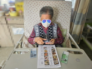 어르신 각자 먹고 싶은 음식을 선택하게 한 다음 선택한 음식의 가격을 계산해보는 활동을 했어요.