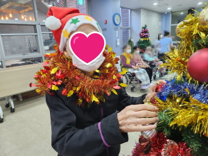 다양한 모양의 볼, 장식품을 트리에 장식하면서 장식 만지기·잡기 활동으로 손 조작 능력을 자극하여 인지를 향상시키는 트리 장식하기 수업을 했어요.