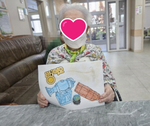 뻥튀기 기계를 색연필로 색칠하고 작품을 완성해보는 미술수업을 했어요.