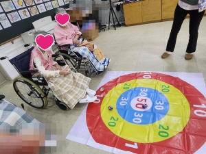 어르신들과 오재미 던지기 게임을 진행했습니다.