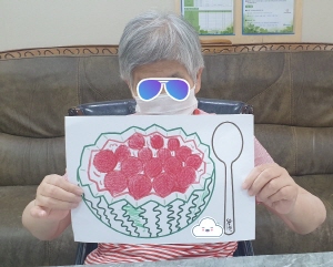 수박 화채를 먹었던 이야기를 나누고 수박 화채 도안을 색연필로 색칠하는 미술수업을 했어요.