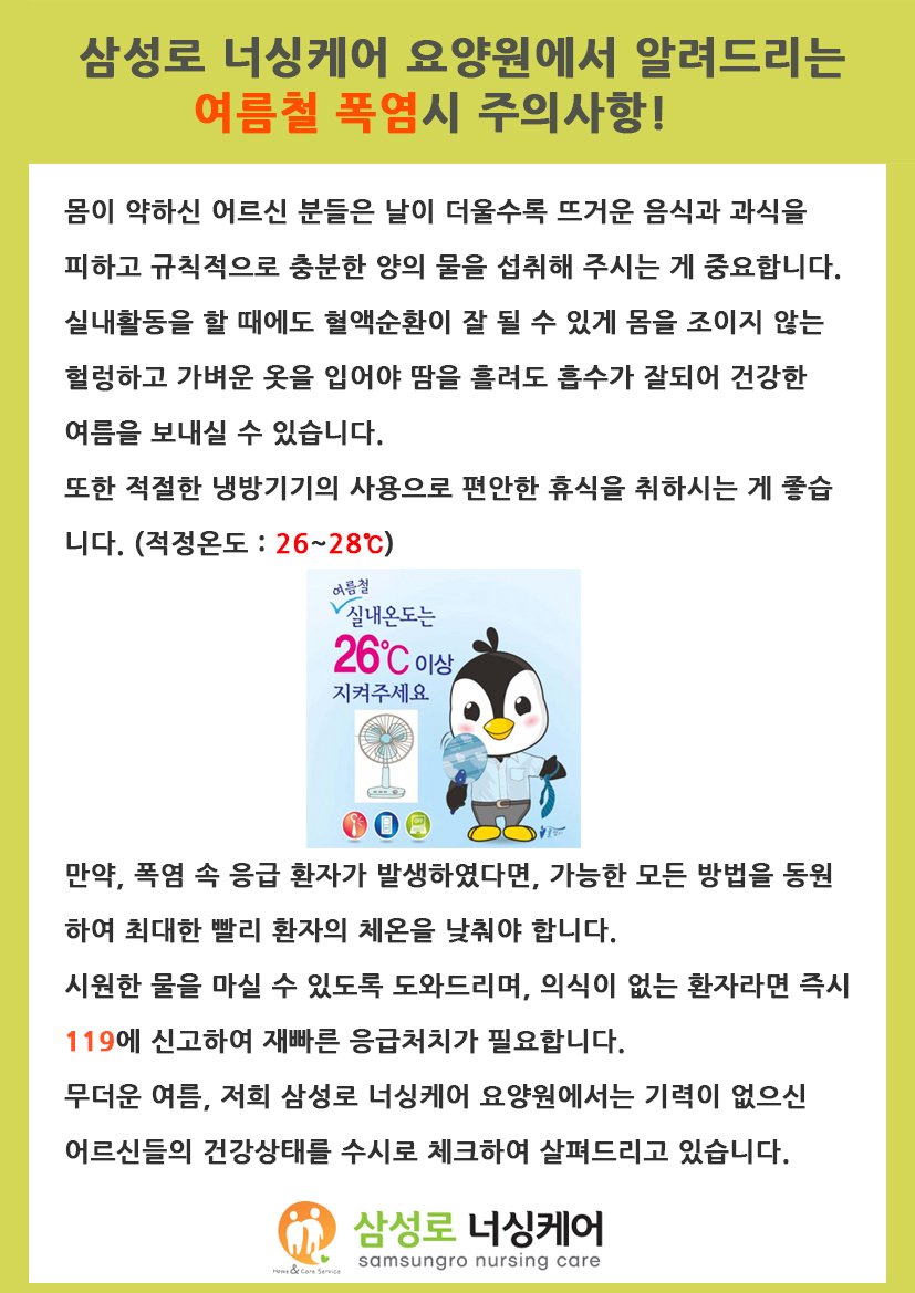 2017년 삼성로 너싱케어 여름철 폭염대비 안내